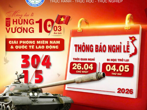 Trường Cao đẳng Y Hà Nội trân trọng thông báo lịch nghỉ các ngày lễ: Giỗ Tổ Hùng Vương, Ngày Giải phóng miền Nam 30/4 và Quốc tế Lao động 1/5 năm 2026 như sau: 📍