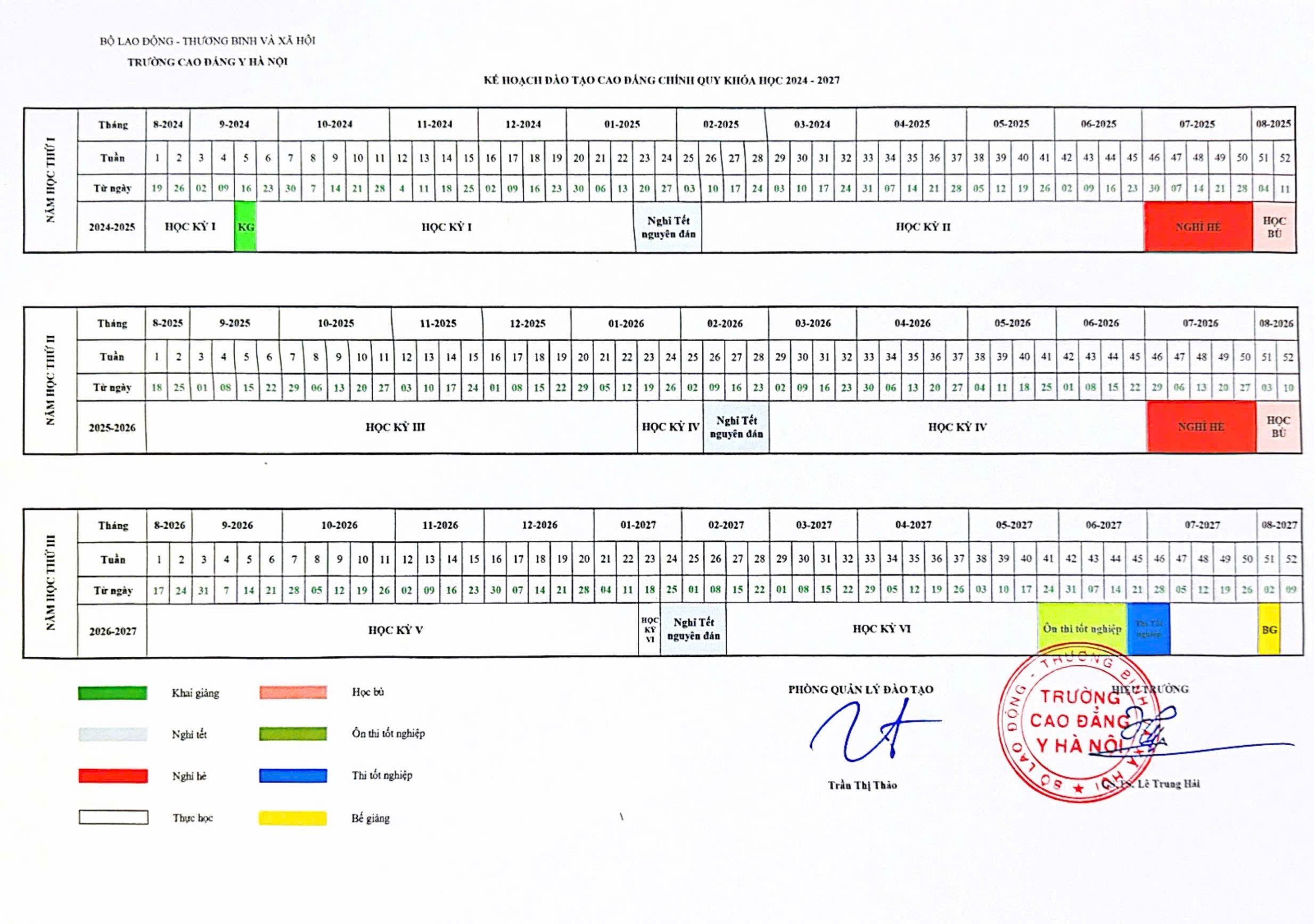 Kế hoạch đào tạo Cao đẳng chính quy khóa học 2024 – 2027