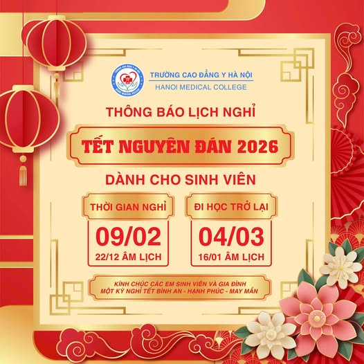 Để giúp sinh viên dễ dàng sắp xếp kế hoạch học tập, làm việc, và chuẩn bị về quê sum họp cùng gia đình, Trường Cao đẳng Y Hà Nội xin thông báo lịch nghỉ Tết 2026 như sau: