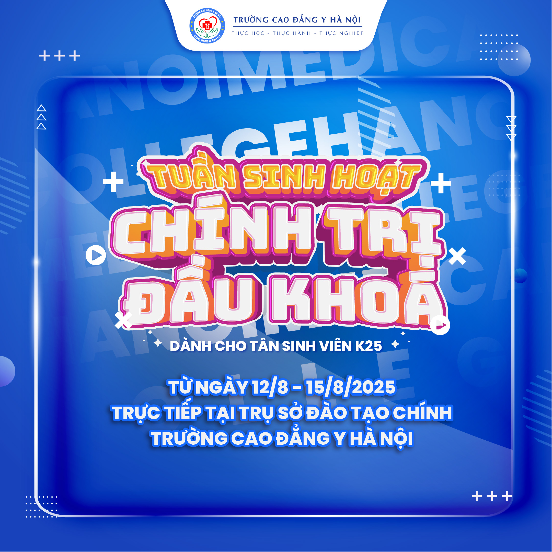 Nhằm giúp các bạn tân sinh viên khóa K25 nhanh chóng hòa nhập với môi trường học tập mới và nắm bắt những thông tin cần thiết, Trường Cao đẳng Y Hà Nội tổ chức “Tuần sinh hoạt chính trị đầu khóa” từ ngày 12/08 đến ngày 15/08/2025.