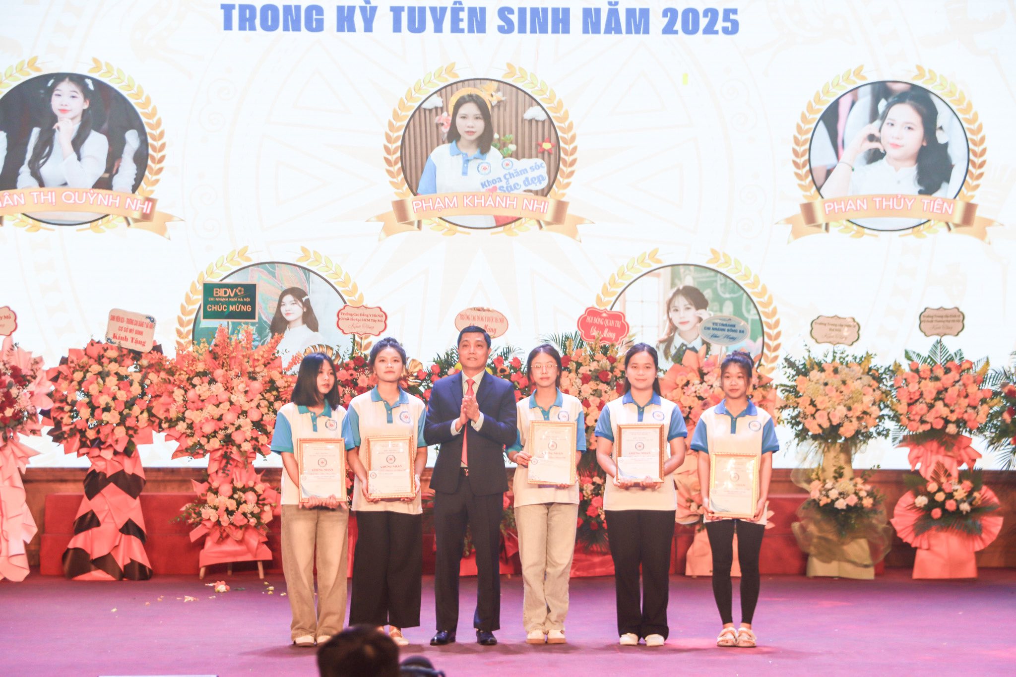 Trong buổi Lễ Chào tân, Nhà trường đã vinh danh các Tân thủ khoa đầu vào khoá học 2025 – 2028 cho sinh viên các ngành Dược, Điều dưỡng, Y sỹ đa khoa, Chăm sóc sắc đẹp, Y học cổ truyền và khen thưởng các sinh viên đạt thành tích xuất sắc trong học tập và rèn luyện năm học 2024 – 2025.