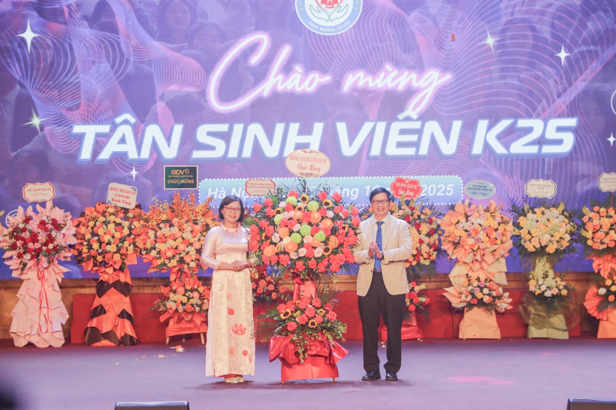 Thay mặt cho các tân sinh viên K25, sinh viên Nguyễn Thanh Thảo Ly – Sinh viên lớp K25C1 – đại diện cho các bạn sinh viên phát biểu chia sẻ cảm nghĩ, tặng hoa và cảm ơn các thầy cô nhà trường.